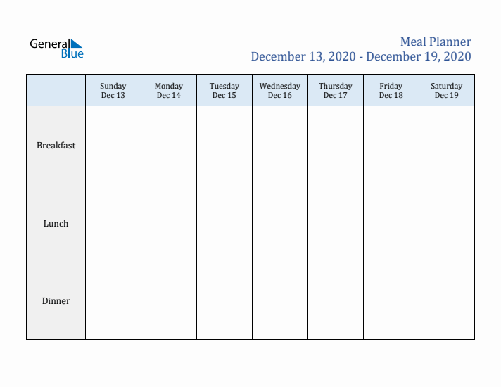 Free Weekly Meal Planner Template for Week 51 of 2020 (Dec 13 to Dec 19)