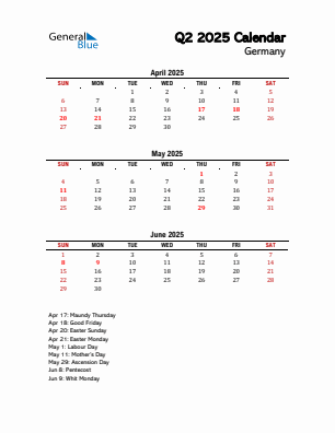 Quarterly Calendars with Germany Holidays