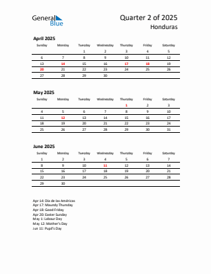 The yearly, quarterly, and monthly calendars on this page include Honduras holidays. These calendars are available in multiple styles and are easy to download or print. You can get these downloadable calendars in Adobe PDF, Microsoft Word, and Excel.