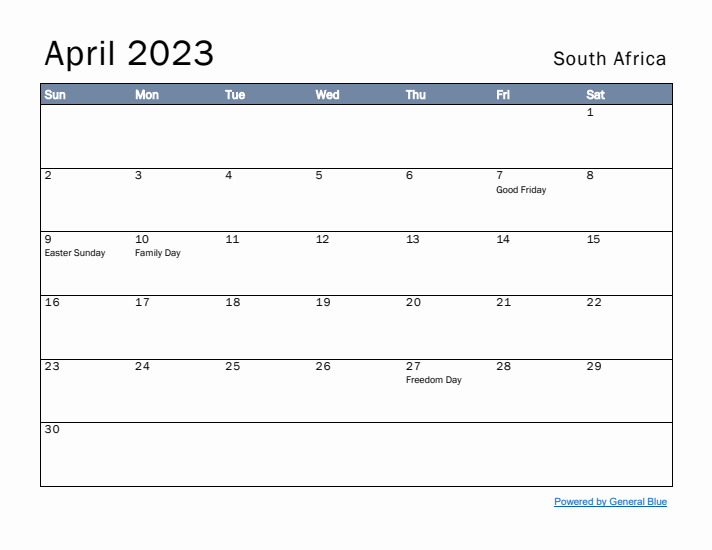 The free April 2023 holiday calendar for South Africa starts on Sunday and...
