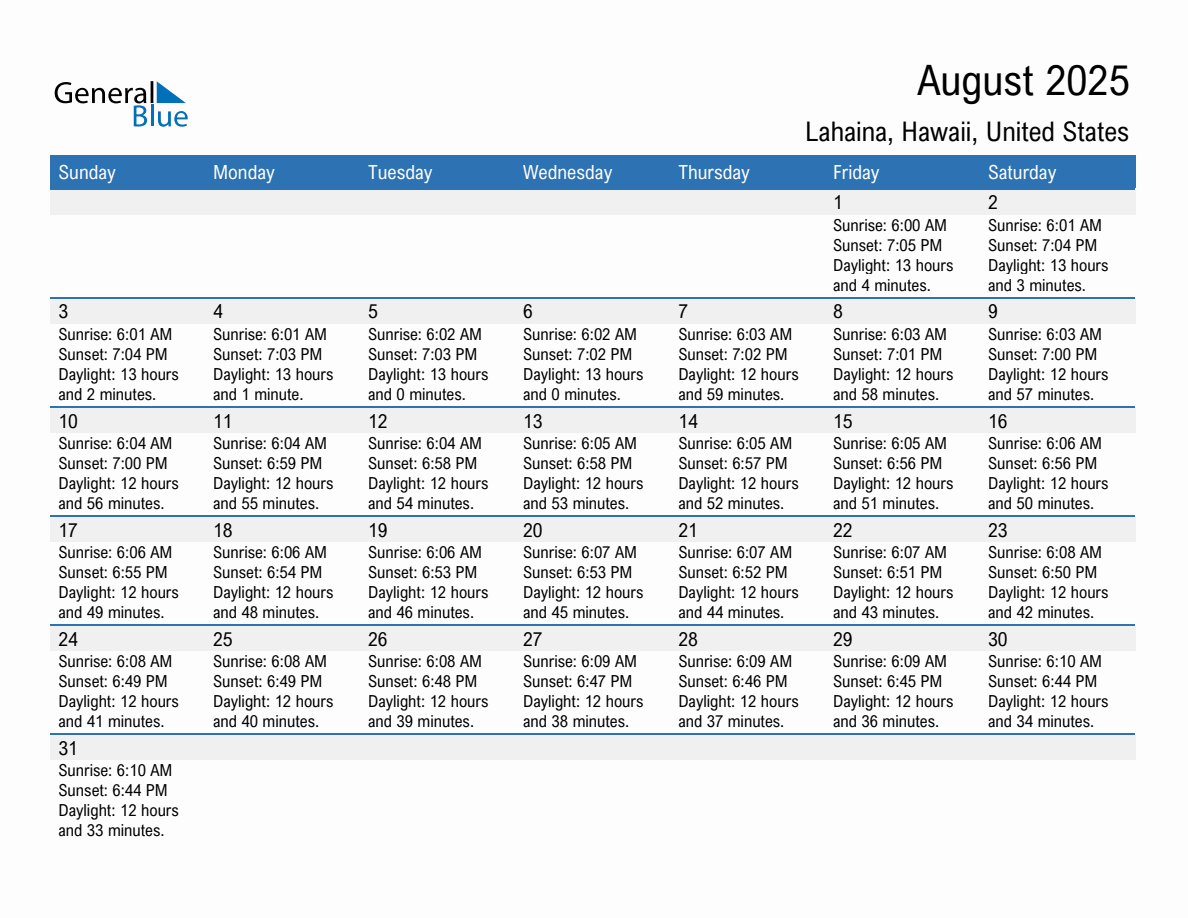 Sunrise and Sunset in Lahaina, Hawaii, United States