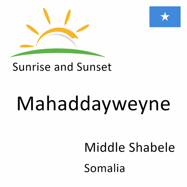 Download or print sunrise and sunset calendar in Mahaddayweyne in PDF, Excel, or Microsoft Word format. The free one-page calendar will display the specific sunrise in Mahaddayweyne, sunset in Mahaddayweyne, and the daylight duration so you can easily view how long the day is for each date. The downloadable sunrise and sunset calendar can also be edited if you want to customize it. We recommend using the Word and Excel for editing January sunrise sunset calendar.
