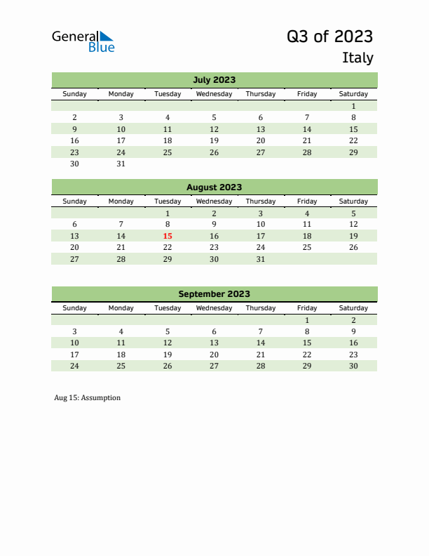 Quarter 3 2023 Italy Calendar