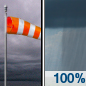 Temperature: 40°F Wind Speed: 10 to 18 mph Wind Direction: SW Forecast: Rain showers before 10pm, then showers and thunderstorms. Cloudy, with a low around 40. Southwest wind 10 to 18 mph, with gusts as high as 30 mph. Chance of precipitation is 100%. New rainfall amounts between a half and three quarters of an inch possible. |