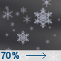 |  | Temperature: 29°F Wind Speed: 5 mph Wind Direction: N Forecast: Rain showers likely before 11pm, then a chance of rain and snow showers between 11pm and 3am. Mostly cloudy. Low around 29, with temperatures rising to around 31 overnight. North wind around 5 mph. Chance of precipitation is 70%. New rainfall amounts less than a tenth of an inch possible. |