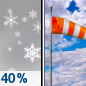 Temperature: 40°F Wind Speed: 25 to 30 mph Wind Direction: NW Forecast: A chance of rain after 3pm. Partly sunny, with a high near 40. |