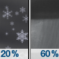 Temperature: 33°F Wind Speed: 9 to 13 mph Wind Direction: ENE Forecast: A slight chance of rain showers between 8pm and 9pm, then a slight chance of snow showers between 9pm and 10pm, then rain showers likely. Mostly cloudy. Low around 33, with temperatures rising to around 37 overnight. East northeast wind 9 to 13 mph, with gusts as high as 23 mph. Chance of precipitation is 60%. New rainfall amounts less than a tenth of an inch possible. |