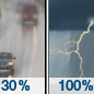 Temperature: 62°F Wind Speed: 6 mph Wind Direction: SSE Forecast: A chance of rain before 1pm, then showers and thunderstorms between 1pm and 4pm, then rain. Cloudy, with a high near 62. South southeast wind around 6 mph. Chance of precipitation is 100%. New rainfall amounts between a half and three quarters of an inch possible. |