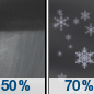 Temperature: 42°F Wind Speed: 17 mph Wind Direction: SW Forecast: Rain and snow showers likely. Mostly cloudy, with a high near 42. Chance of precipitation is 60%. New snow accumulation of less than half an inch possible. |