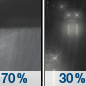 Temperature: 62°F Wind Speed: 10 to 20 mph Wind Direction: N Forecast: A chance of rain showers before 7am, then showers and thunderstorms likely. Mostly cloudy, with a high near 62. North wind 10 to 20 mph, with gusts as high as 30 mph. Chance of precipitation is 70%. |