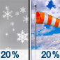 Temperature: 27°F Wind Speed: 12 to 23 mph Wind Direction: W Forecast: A slight chance of snow before 7am. Mostly cloudy, with a high near 27. |