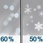Temperature: 37°F Wind Speed: 9 mph Wind Direction: N Forecast: Snow likely and a chance of sleet before 11am, then a chance of snow showers. Cloudy, with a high near 37. North wind around 9 mph. Chance of precipitation is 60%. New rainfall amounts less than a tenth of an inch possible. |