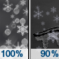 Temperature: 35°F Wind Speed: 10 to 15 mph Wind Direction: N Forecast: Snow likely before 11am, then a slight chance of snow and a slight chance of sleet between 11am and 5pm, then a slight chance of snow and a slight chance of sleet and a slight chance of freezing rain. Mostly cloudy, with a high near 35. Chance of precipitation is 60%. New snow accumulation of less than half an inch possible. Little or no ice accumulation expected. |