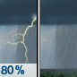Temperature: 50°F Wind Speed: 9 mph Wind Direction: S Forecast: Showers and thunderstorms. Cloudy, with a low around 50. |