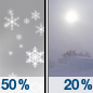 Temperature: 44°F Wind Speed: 5 to 15 mph Wind Direction: WSW Forecast: A slight chance of snow showers before noon. Mostly cloudy, with a high near 44. Chance of precipitation is 20%. |