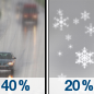 Temperature: 12°F Wind Speed: 13 mph Wind Direction: W Forecast: Rain and snow likely. Mostly cloudy. Low around 12, with temperatures rising to around 14 overnight. West wind around 13 mph. Chance of precipitation is 60%. New snow accumulation of less than one inch possible. |