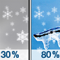 Temperature: 4°F Wind Speed: 7 to 13 mph Wind Direction: NNW Forecast: Snow. Cloudy. High near 4, with temperatures falling to around 1 in the afternoon. Wind chill values as low as -19. North northwest wind 7 to 13 mph. Chance of precipitation is 90%. New snow accumulation of 1 to 3 inches possible. |
