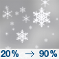 Temperature: 23°F Wind Speed: 2 to 12 mph Wind Direction: NE Forecast: Snow likely. Mostly cloudy, with a low around 23. Chance of precipitation is 70%. |
