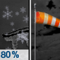 Temperature: 24°F Wind Speed: 7 to 22 mph Wind Direction: SSE Forecast: A slight chance of snow between 10am and 11am, then snow and patchy blowing snow. Mostly cloudy. High near 24, with temperatures falling to around 18 in the afternoon. South southeast wind 7 to 22 mph, with gusts as high as 33 mph. Chance of precipitation is 80%. New snow accumulation of 1 to 2 inches possible. |