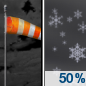 Temperature: 30°F Wind Speed: 6 to 9 mph Wind Direction: N Forecast: A slight chance of snow. Mostly cloudy, with a high near 30. North wind 6 to 9 mph. |