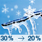 Temperature: 37°F Wind Speed: 10 to 15 mph Wind Direction: WNW Forecast: A chance of snow showers and a chance of sleet and a slight chance of freezing rain. Mostly cloudy, with a high near 37. West northwest wind 10 to 15 mph, with gusts as high as 30 mph. Chance of precipitation is 30%. |