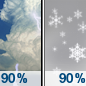 Temperature: 30°F Wind Speed: 10 mph Wind Direction: W Forecast: A slight chance of snow after 1am. Mostly cloudy, with a low around 30. |