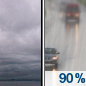 Temperature: 40°F Wind Speed: 8 to 12 mph Wind Direction: SW Forecast: Rain. Mostly cloudy, with a low around 40. Chance of precipitation is 90%. |