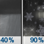 Temperature: 33°F Wind Speed: 5 to 10 mph Wind Direction: SE Forecast: A chance of rain showers between 8pm and 1am, then sleet and rain showers between 1am and 5am, then rain showers and a slight chance of sleet. Mostly cloudy, with a low around 33. Southeast wind 5 to 10 mph. Chance of precipitation is 90%. New snow accumulation of less than half an inch possible. |