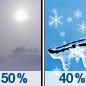 Temperature: 40°F Wind Speed: 2 to 8 mph Wind Direction: S Forecast: A chance of freezing rain and rain and snow likely after 7am. Mostly cloudy, with a high near 40. Chance of precipitation is 70%. |