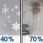 Temperature: 34°F Wind Speed: 8 to 12 mph Wind Direction: W Forecast: A chance of snow. Partly sunny, with a high near 34. West wind 8 to 12 mph, with gusts as high as 22 mph. Chance of precipitation is 40%. |