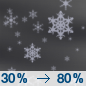 Temperature: 31°F Wind Speed: 0 to 5 mph Wind Direction: N Forecast: A chance of snow showers. Mostly cloudy. High near 31, with temperatures falling to around 24 in the afternoon. North wind 0 to 5 mph. Chance of precipitation is 40%. |