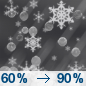 Temperature: 5°F Wind Speed: 10 to 15 mph Wind Direction: N Forecast: Snow showers likely and freezing rain likely and a slight chance of sleet. Mostly cloudy, with a low around 5. New snow accumulation of less than one inch possible. Little or no ice accumulation expected. |