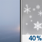 Temperature: 23°F Wind Speed: 5 mph Wind Direction: WNW Forecast: A chance of snow after midnight. Mostly cloudy, with a low around 23. West northwest wind around 5 mph. Chance of precipitation is 30%. |