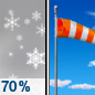Temperature: 37°F Wind Speed: 16 to 31 mph Wind Direction: WNW Forecast: Rain and snow likely before 7am. Sunny, with a high near 37. West northwest wind 16 to 31 mph, with gusts as high as 49 mph. Chance of precipitation is 70%. |