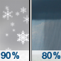 Temperature: 47°F Wind Speed: 15 mph Wind Direction: NNE Forecast: Rain and snow before 7am, then rain showers. Cloudy, with a high near 47. Chance of precipitation is 90%. |