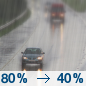 Temperature: 51°F Wind Speed: 7 to 10 mph Wind Direction: NE Forecast: Rain likely before 2pm, then rain showers likely. Cloudy, with a high near 51. Northeast wind 7 to 10 mph. Chance of precipitation is 70%. New rainfall amounts between a quarter and half of an inch possible. |