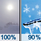 Temperature: 13°F Wind Speed: 10 mph Wind Direction: E Forecast: A chance of snow. Mostly cloudy, with a high near 13. East wind around 10 mph. Chance of precipitation is 40%. New snow accumulation of less than half an inch possible. |