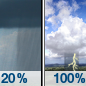 Temperature: 44°F Wind Speed: 5 to 12 mph Wind Direction: W Forecast: Showers and thunderstorms. Mostly cloudy, with a low around 44. West wind 5 to 12 mph. Chance of precipitation is 100%. New rainfall amounts between a half and three quarters of an inch possible. |
