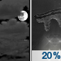 Temperature: 30°F Wind Speed: 0 to 3 mph Wind Direction: N Forecast: A slight chance of rain between 4am and 5am, then a slight chance of freezing rain. Mostly cloudy, with a low around 30. North wind 0 to 3 mph. Chance of precipitation is 20%. |