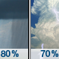 Temperature: 70°F Wind Speed: 9 to 17 mph Wind Direction: SW Forecast: Rain showers before noon, then showers and thunderstorms likely. Partly sunny, with a high near 70. Southwest wind 9 to 17 mph, with gusts as high as 23 mph. Chance of precipitation is 80%. |