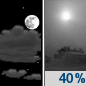 Temperature: 8°F Wind Speed: 0 to 5 mph Wind Direction: NW Forecast: A chance of snow. Mostly cloudy, with a low around 8. Northwest wind 0 to 5 mph. Chance of precipitation is 30%. |