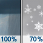 Temperature: 12°F Wind Speed: 5 to 10 mph Wind Direction: S Forecast: A slight chance of snow after midnight. Mostly cloudy. Low around 12, with temperatures rising to around 20 overnight. South wind 5 to 10 mph. Chance of precipitation is 20%. |