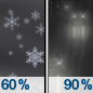Temperature: 21°F Wind Speed: 5 mph Wind Direction: SW Forecast: Snow likely. Mostly cloudy, with a low around 21. |