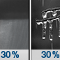 Temperature: 30°F Wind Speed: 5 mph Wind Direction: N Forecast: Partly cloudy, with a low around 30. |