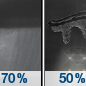 Temperature: 27°F Wind Speed: 5 mph Wind Direction: N Forecast: Rain showers likely before 3am, then a chance of freezing rain. Mostly cloudy, with a low around 27. North wind around 5 mph. Chance of precipitation is 70%. Little or no ice accumulation expected. |