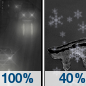 Temperature: 23°F Wind Speed: 15 to 20 mph Wind Direction: W Forecast: A chance of snow showers before 7am. Mostly cloudy, with a high near 23. West wind 15 to 20 mph, with gusts as high as 35 mph. Chance of precipitation is 30%. New snow accumulation of less than half an inch possible. |