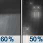 Temperature: 56°F Wind Speed: 5 to 10 mph Wind Direction: WSW Forecast: Rain showers likely. Cloudy, with a low around 56. West southwest wind 5 to 10 mph. Chance of precipitation is 60%. New rainfall amounts less than a tenth of an inch possible. |
