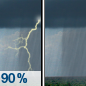 Temperature: 51°F Wind Speed: 9 mph Wind Direction: SSE Forecast: Showers and thunderstorms. Cloudy, with a low around 51. |