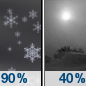 Temperature: 13°F Wind Speed: 5 to 8 mph Wind Direction: NW Forecast: A slight chance of snow showers before 1am. Mostly cloudy, with a low around 13. |
