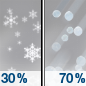 Temperature: 30°F Wind Speed: 15 mph Wind Direction: N Forecast: Rain likely before 7pm, then a chance of rain showers between 7pm and 1am, then a chance of rain and snow showers. Mostly cloudy, with a low around 30. Chance of precipitation is 70%. |